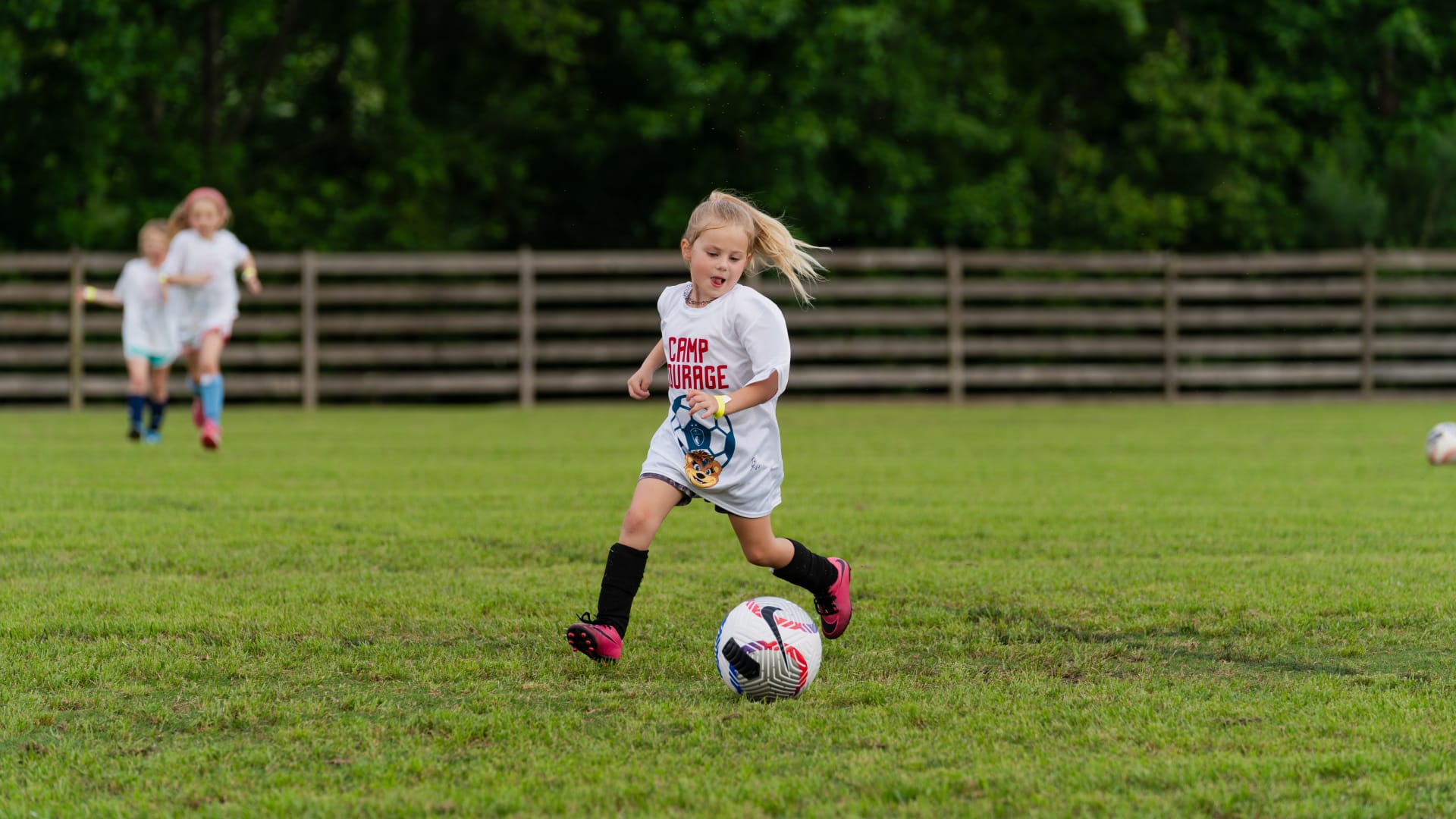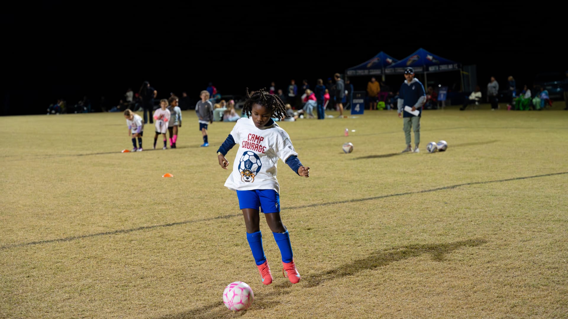 Camp Courage presented by Inmar Intelligence is a soccer-themed youth program designed to inspire confidence, teamwork, and a love of the game both on and off the field. Led by NC Courage staff, participants rotate through various soccer stations that are designed to teach them new skills with kids of a similar age to them. Camp Courage creates a safe, energetic environment where participants can grow, stay active, and feel empowered through sport.