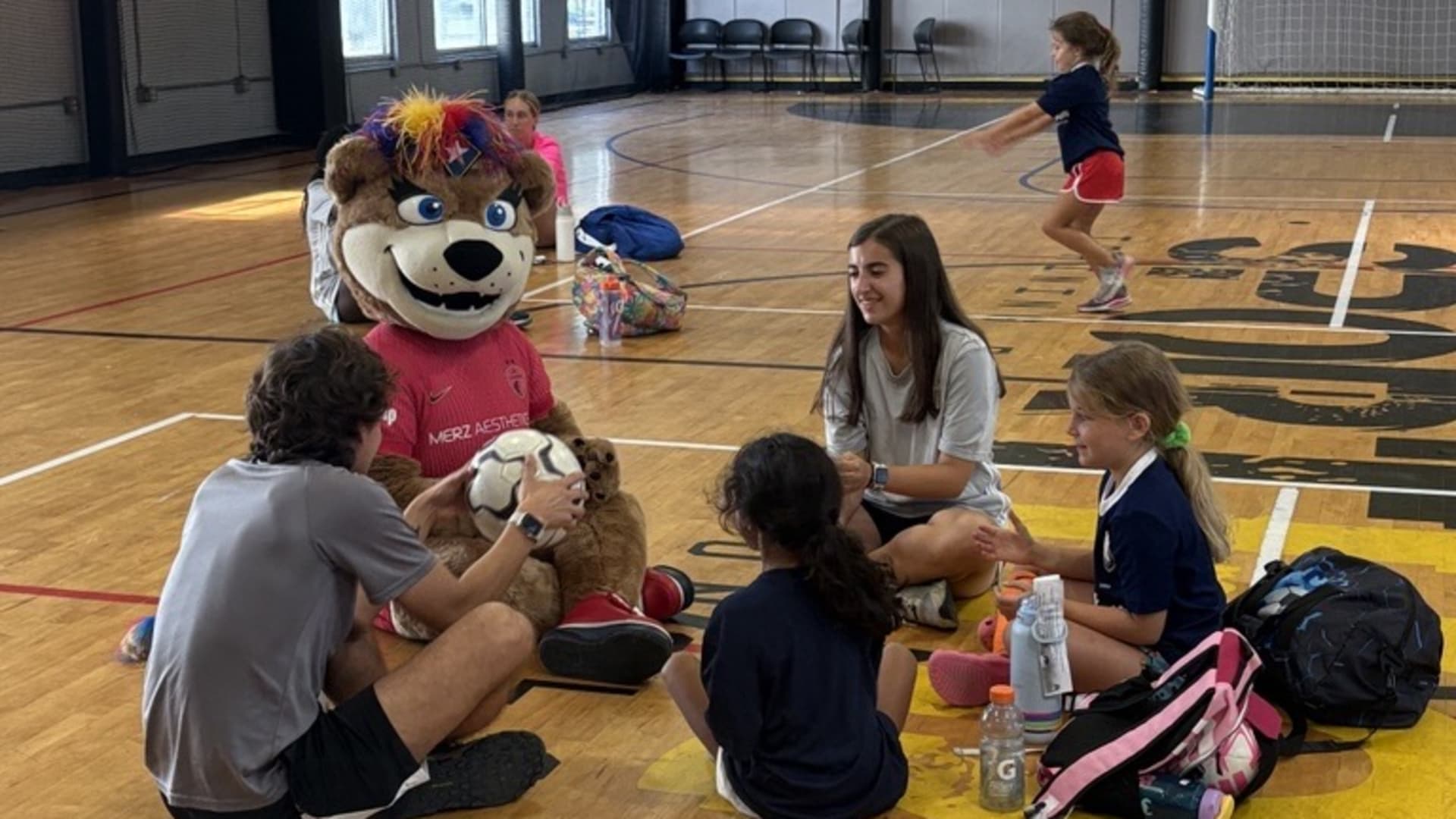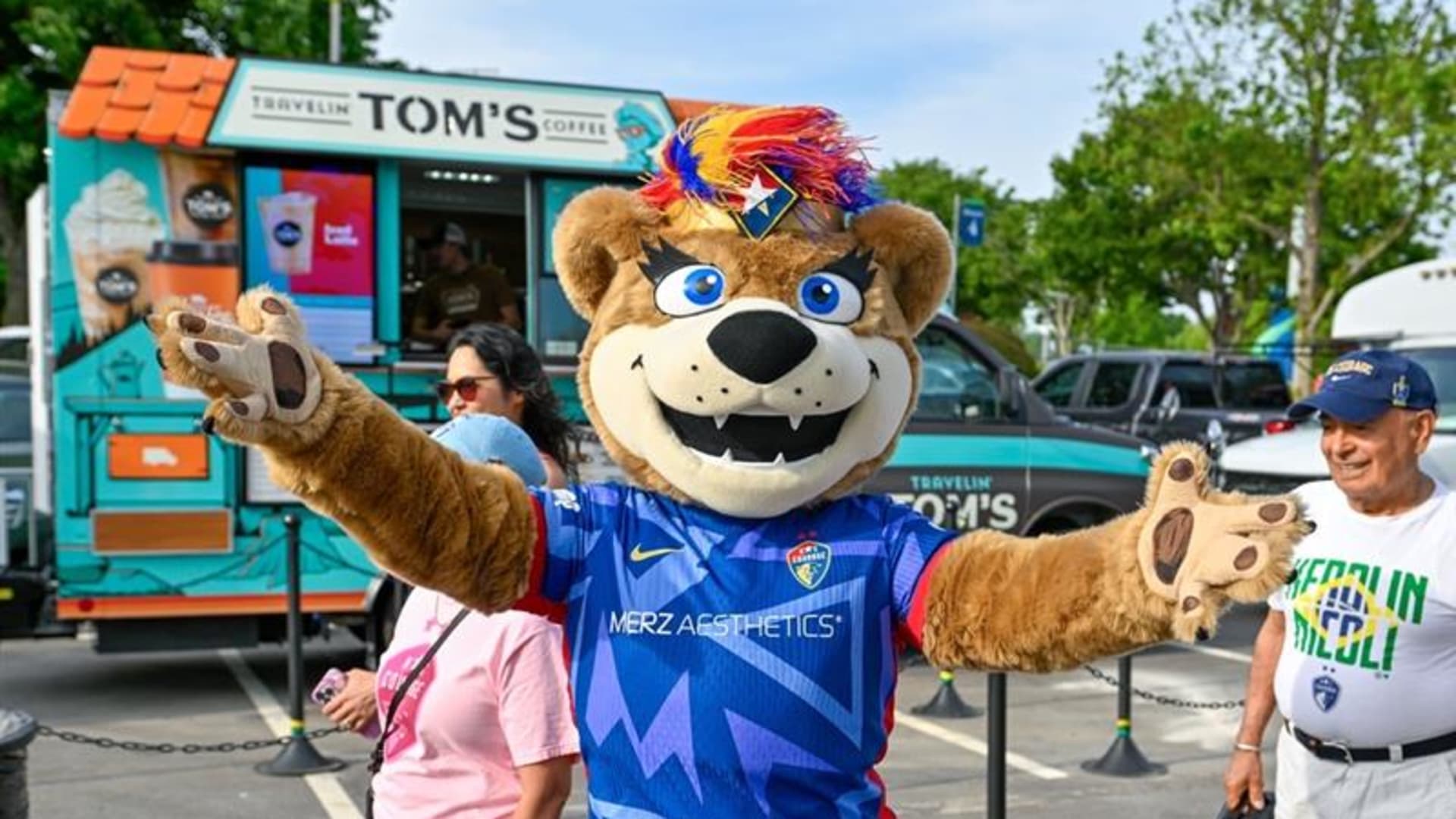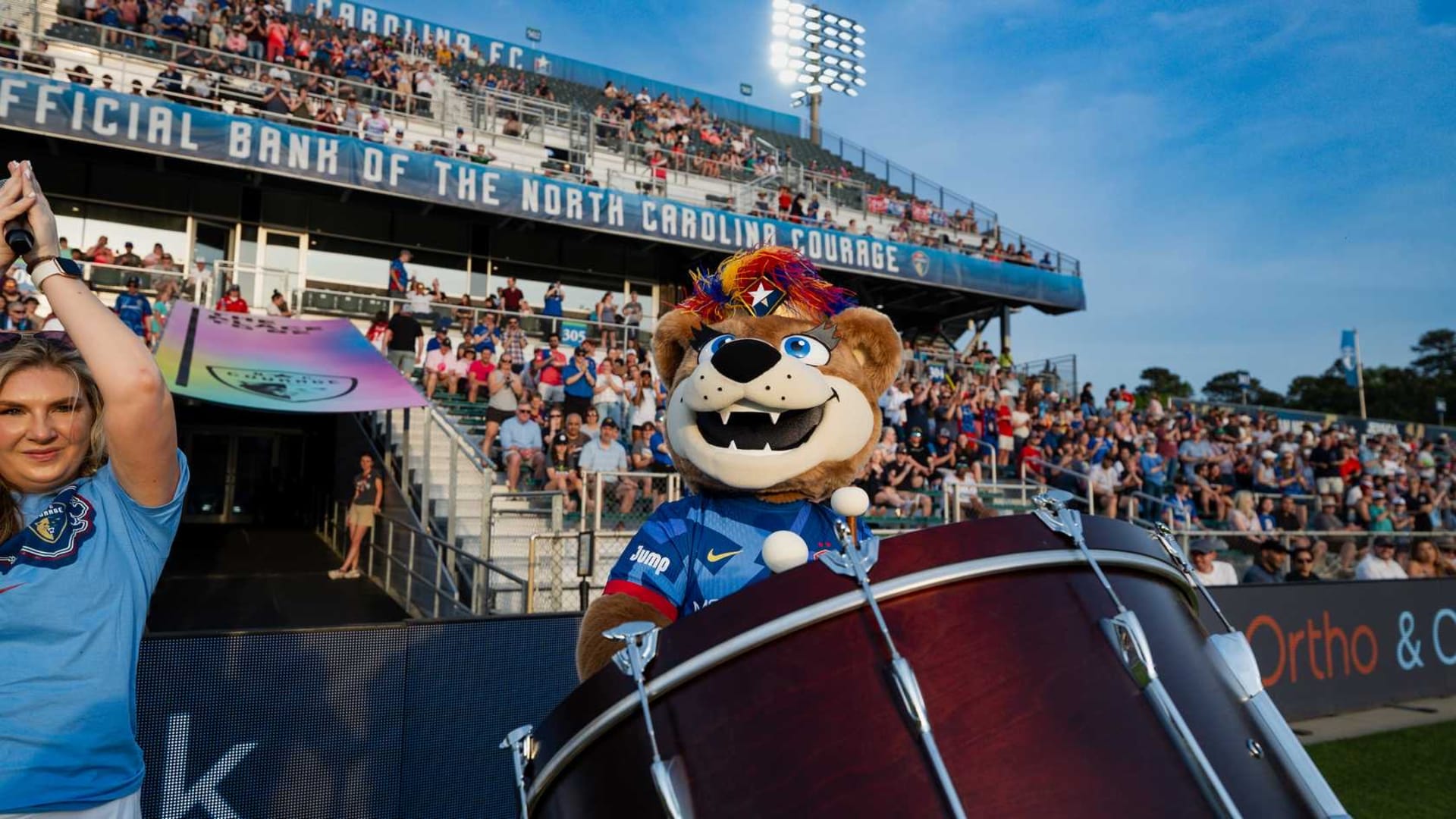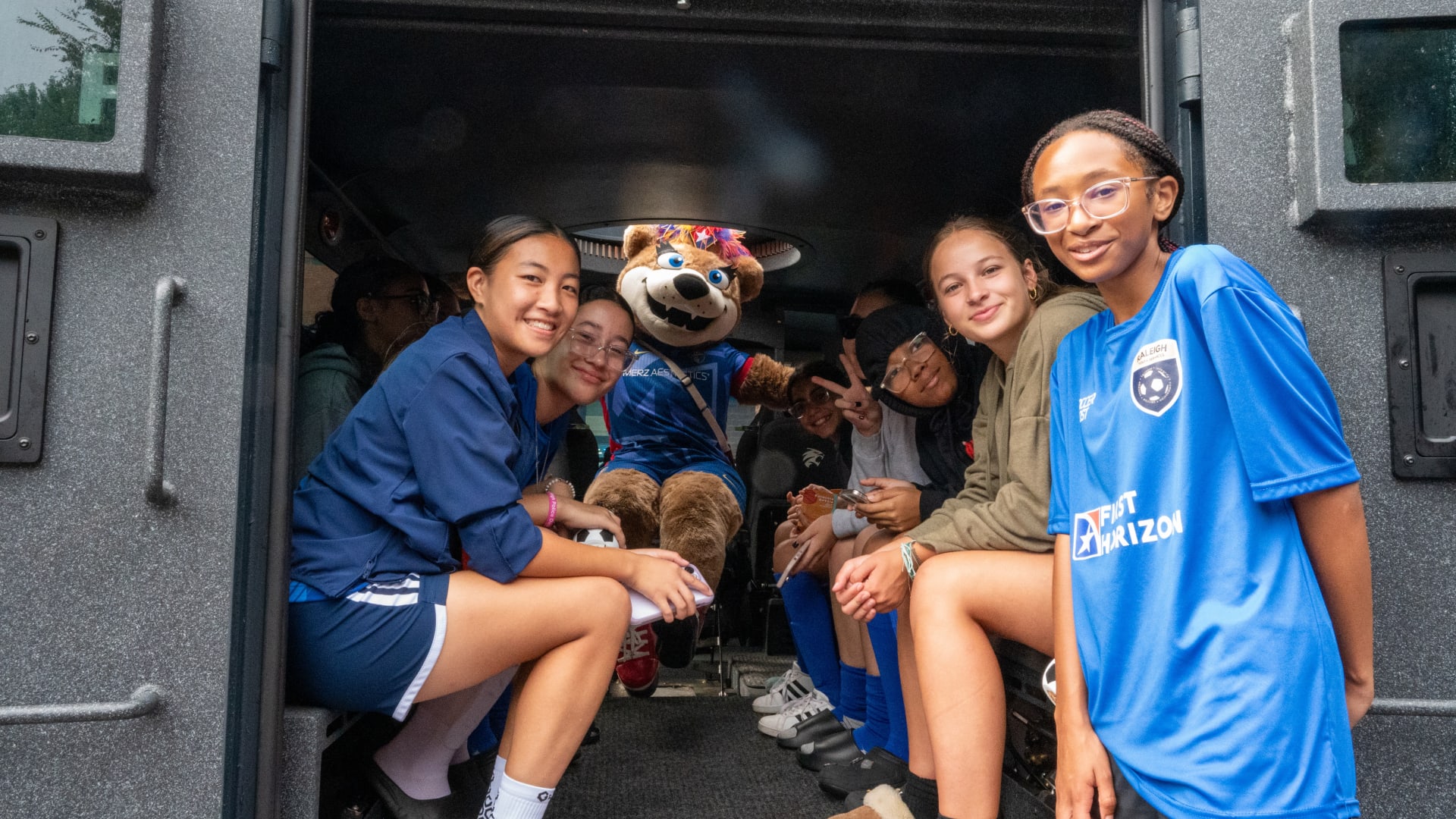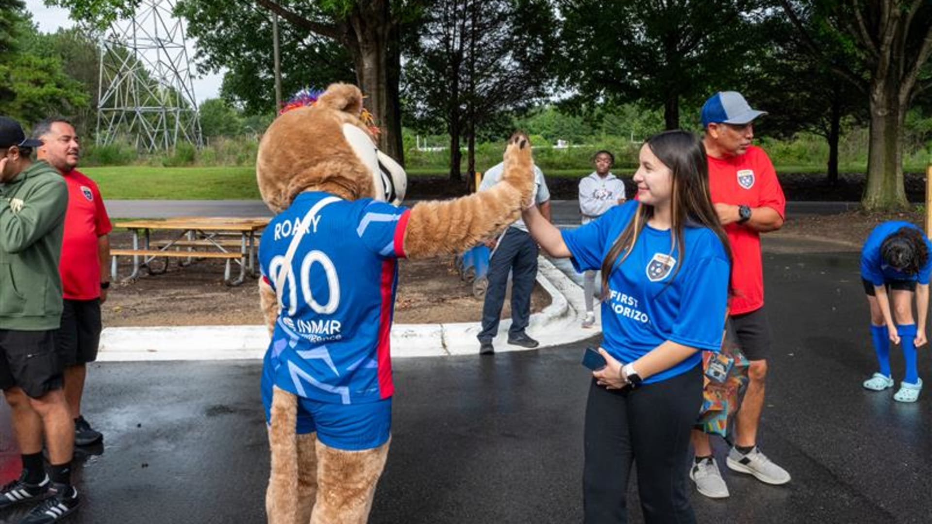 Over time, Roary became a local celebrity, making fast friends with fellow mascots like Wool E. Bull of the Durham Bull and Stormy the Ice Hog of the Carolina Hurricanes. She also formed a special connection with the NCFC Youth players, who she calls her “best friends for life.” Whether she’s on the sideline cheering or out in the community, Roary brings smiles, high fives, and plenty of hugs.