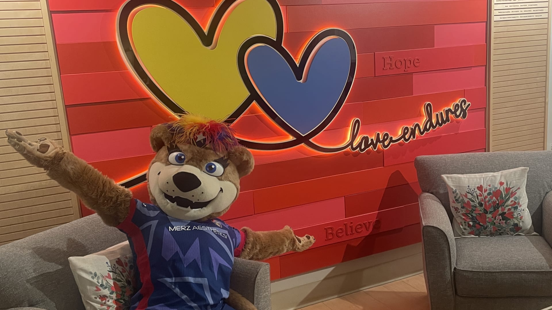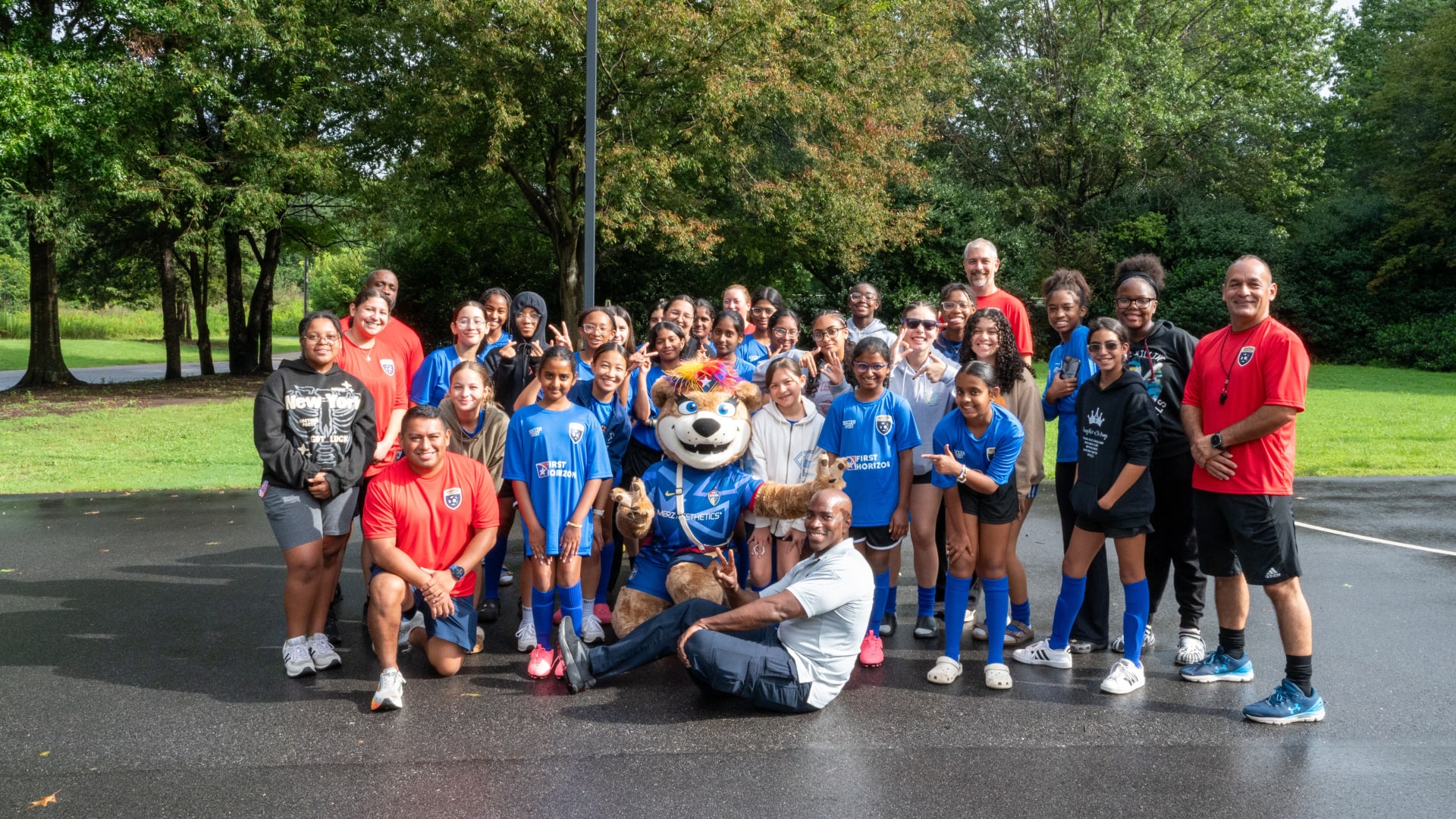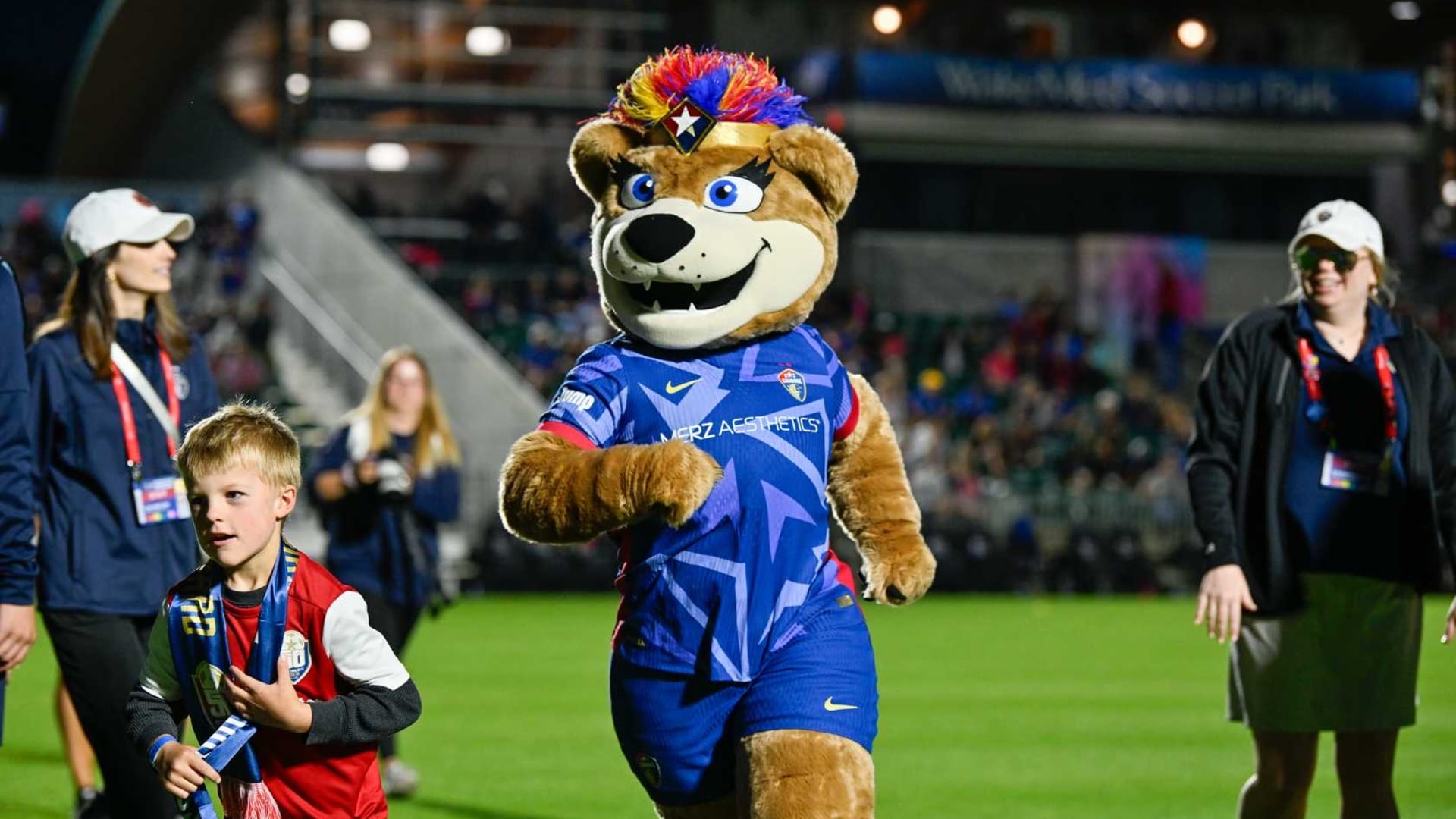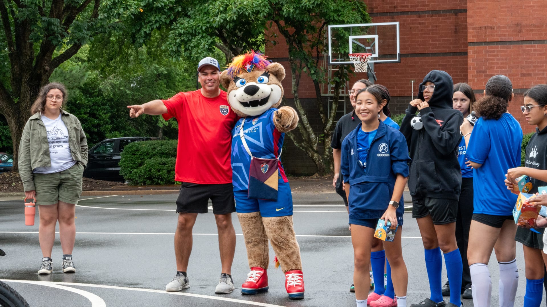 Over time, Roary became a local celebrity, making fast friends with fellow mascots like Wool E. Bull of the Durham Bull and Stormy the Ice Hog of the Carolina Hurricanes. She also formed a special connection with the NCFC Youth players, who she calls her “best friends for life.” Whether she’s on the sideline cheering or out in the community, Roary brings smiles, high fives, and plenty of hugs.